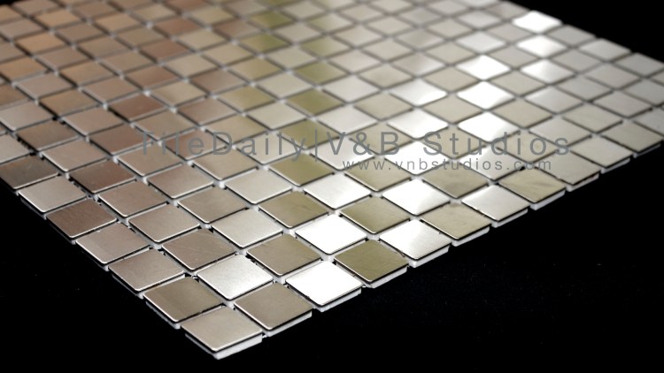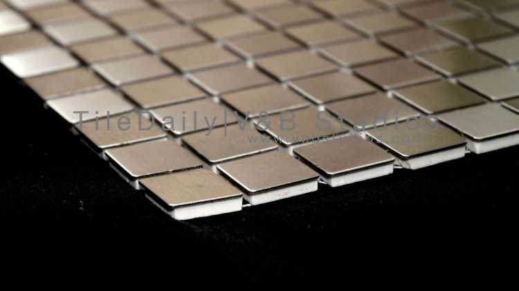 Today’s tile is a great steel tile with a very cool look. It consists of brushed steel squares that are set in alternating directions. These tiles are made from 100% stainless steel and won’t change color over time. These tiles are for use on walls only and can be used as backsplashes in kitchens, or commercial uses. The tile comes in 12×12 size. The tile is only around 3/16 inch thick.