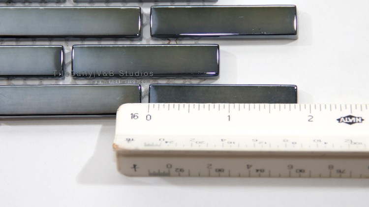 Today we feature an elegant iridescent black glass mosaic. The mosaic consists of smaller glass bricks, and is great for most walls – kitchen backsplashes, bathroom walls, behind counters, fireplace, etc. This glossy black tile will work great with white and grey or even bold colors like red and orange.