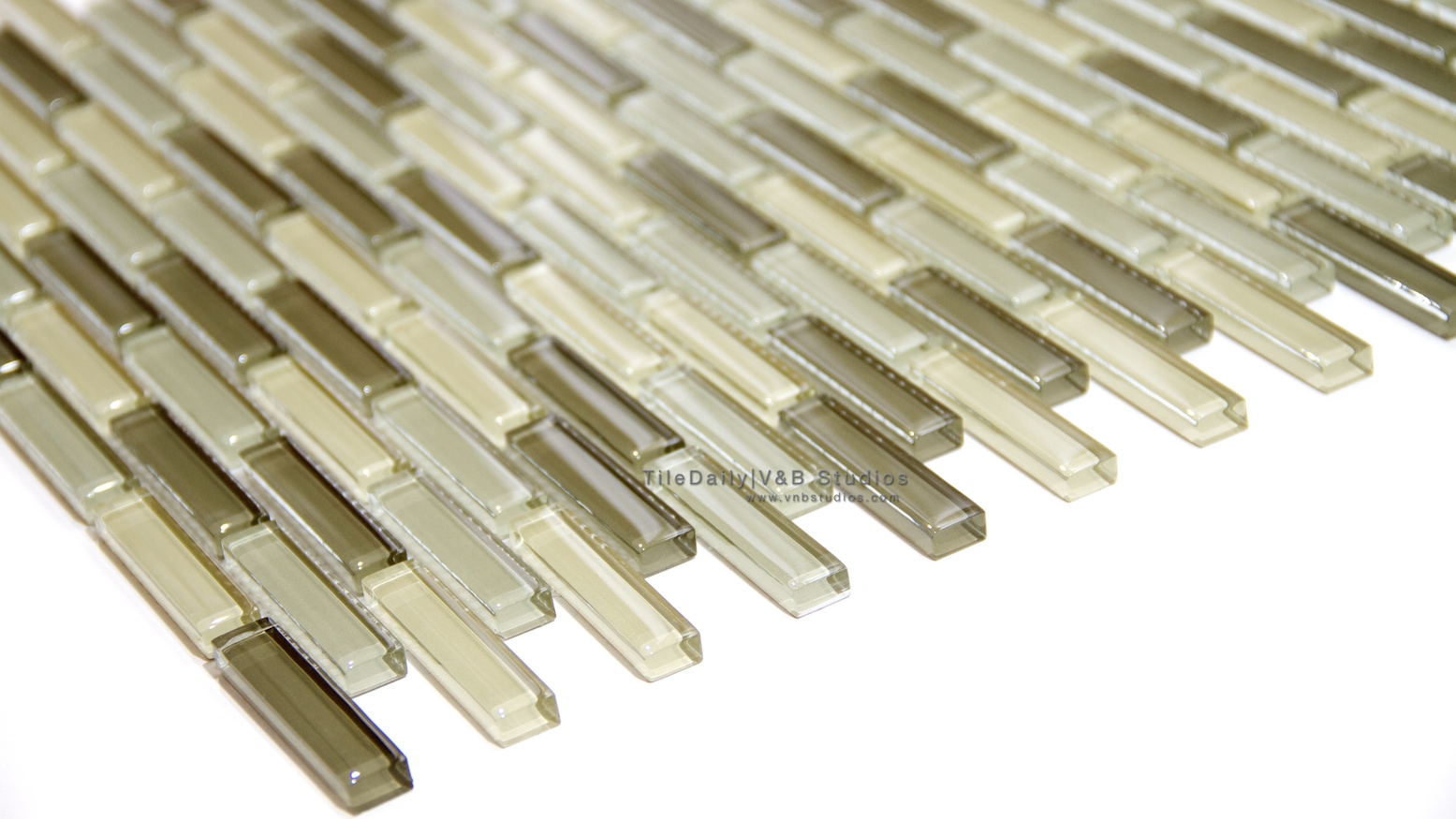 Consisting of three shades of green, this glass mosaic is made of beautifully finished, glossy, small glass bricks. The colors are a mix of muted greens from light to olive green.