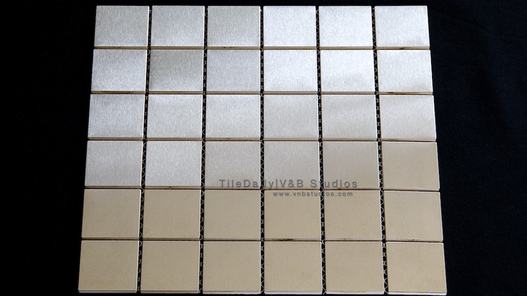 This is a neat and simple steel mosaic tile – great for bringing a modern and minimalist touch to your designs and spaces. The tiles have a light brushed steel look and are made from stainless steel. This is a great tile for kitchen backsplashes as they complement steel appliances and glass very well. They can also be used as borders, or liners by cutting them into smaller strips in twos or threes.