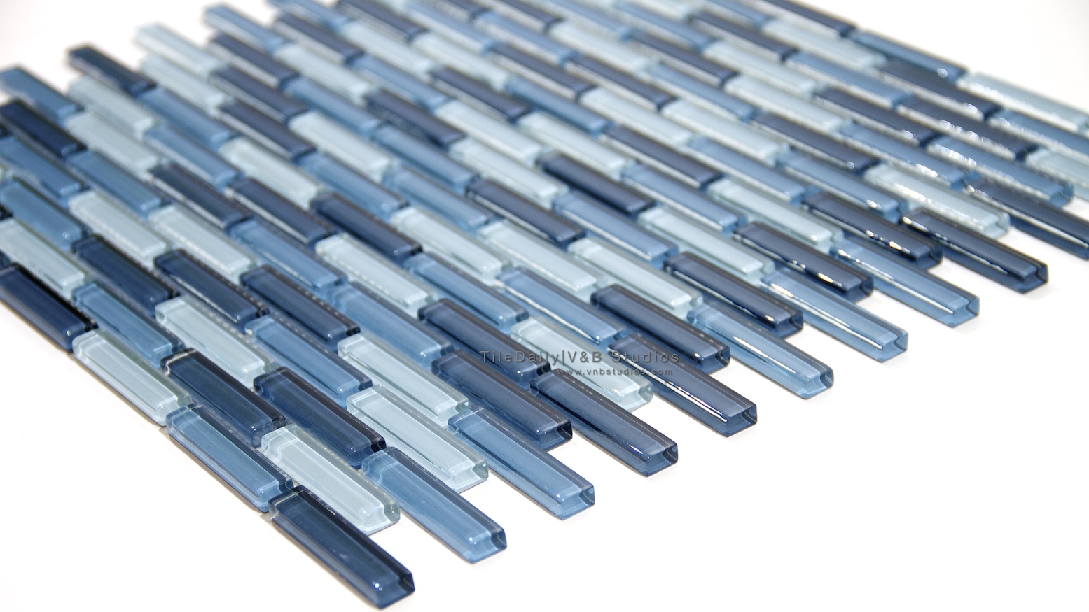 This is a beautiful glass mosaic tile with a nice blend of blue glass bricks. It has 4 different shades of blue randomly set on a mesh sheet. This mosaic tile looks great as a backsplash, or you can use it as an accent liner. It can also be used on bathroom walls, or other places where the color might be desired. It has a glossy finish.