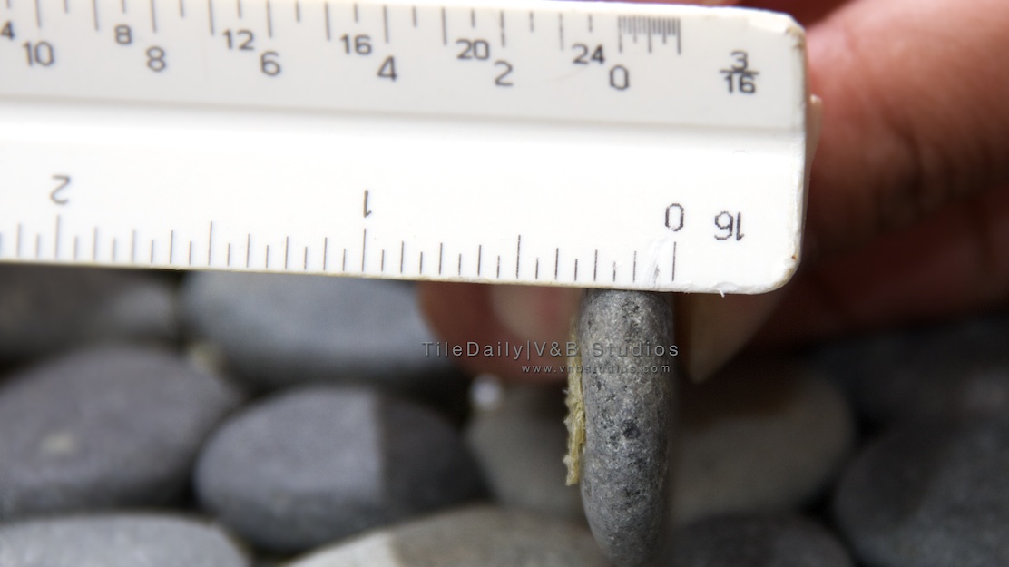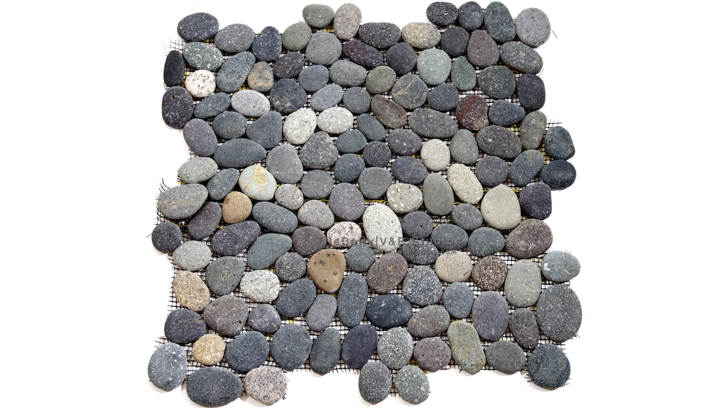 These mosaics are made from natural pebbles stolen from beaches around the world. I should’ve thought of this when I was playing with pebbles as a kid….;-) They are arranged on mesh sheets in a beautiful mix of various shades of grey, green, brown and white. The pebbles have a naturally honed texture, and range in size from 1/2″ to 1.25″.