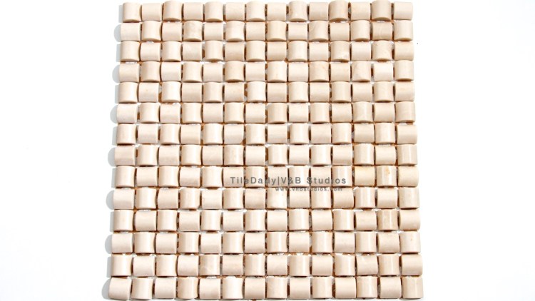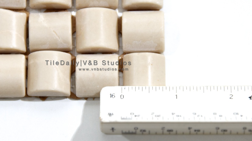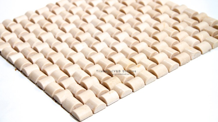 Today’s tile is a unique mosaic that is made from botticino marble. It comes with a smooth, honed finish. This mosaic features a weave pattern that is created by setting semi-cylindrical marble pieces in alternating directions.