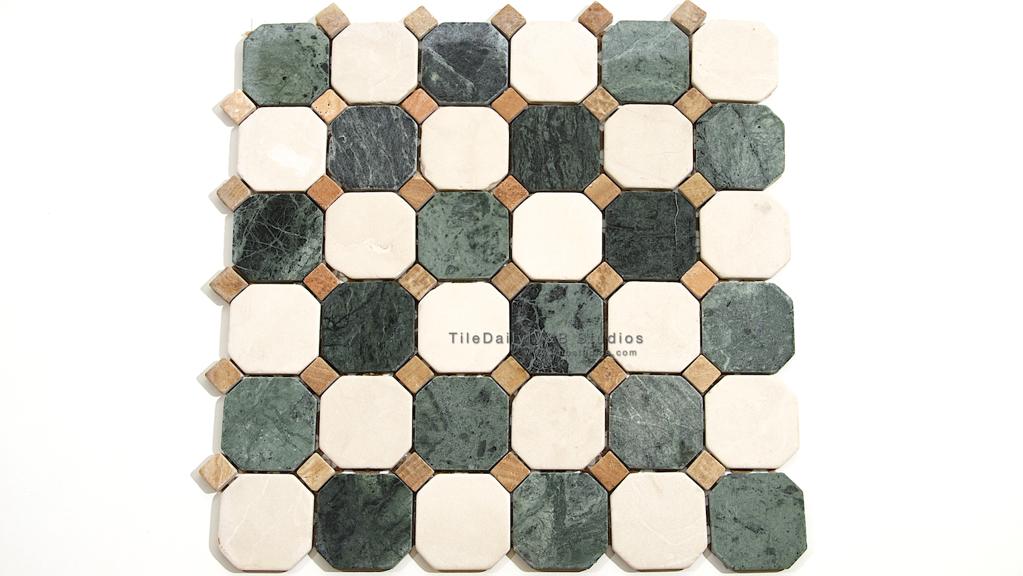 NS0030 Octagon Marble Mosaic, Green & Cream