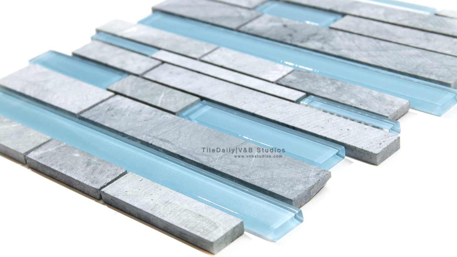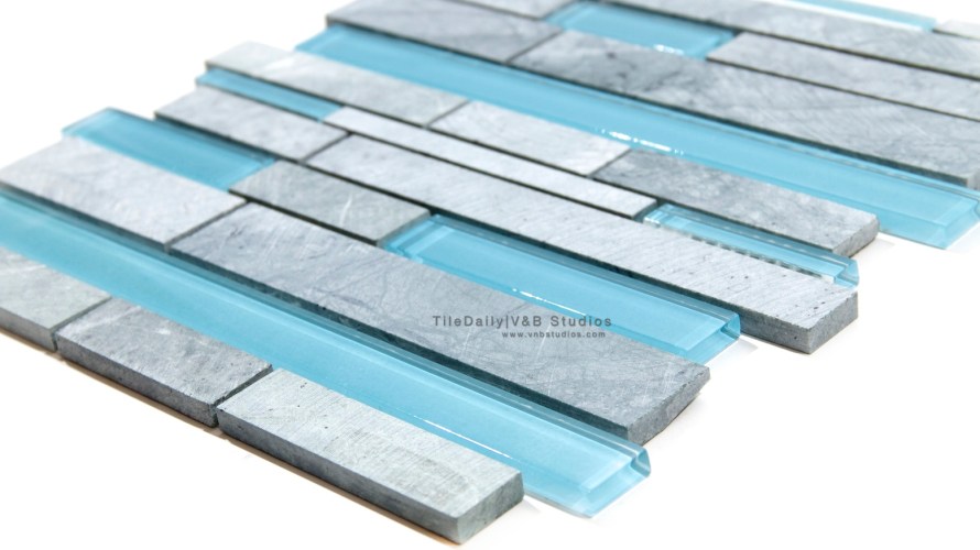 Random Brick Marble and Glass Mosaic, Mix Blue