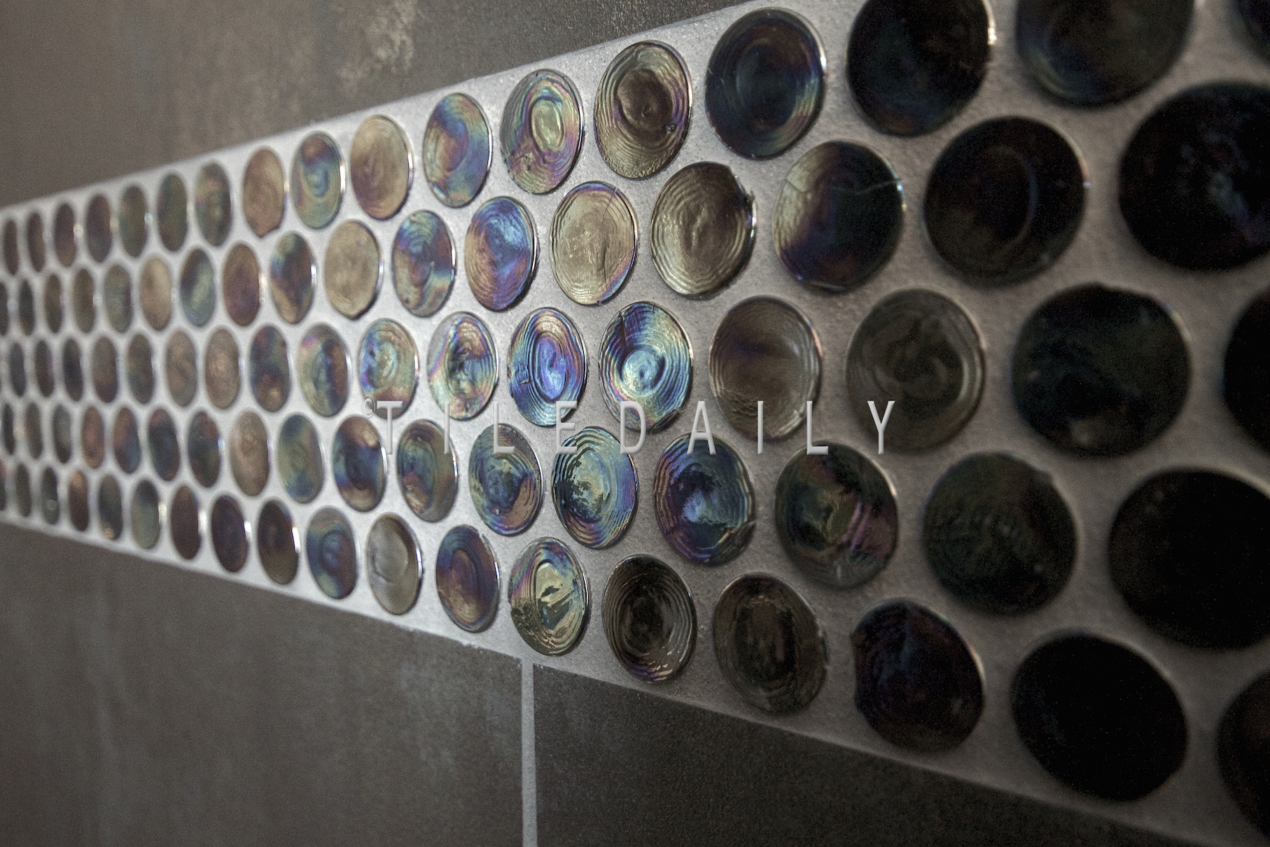 12×24 Metallic Iron Tile with Iridescent Penny Round Border