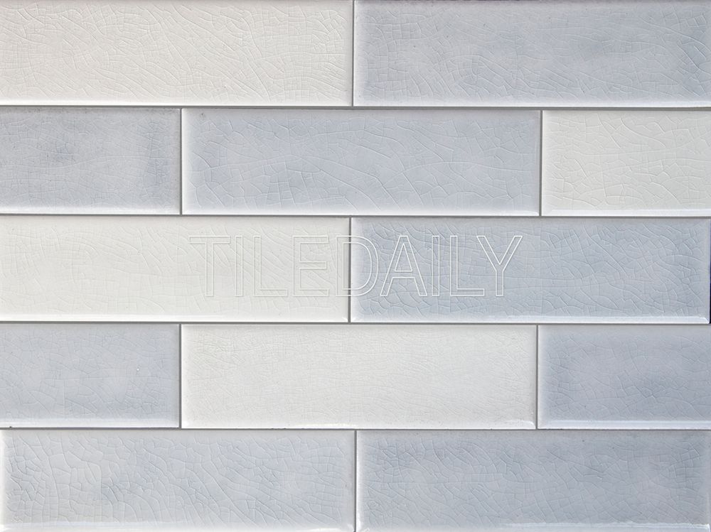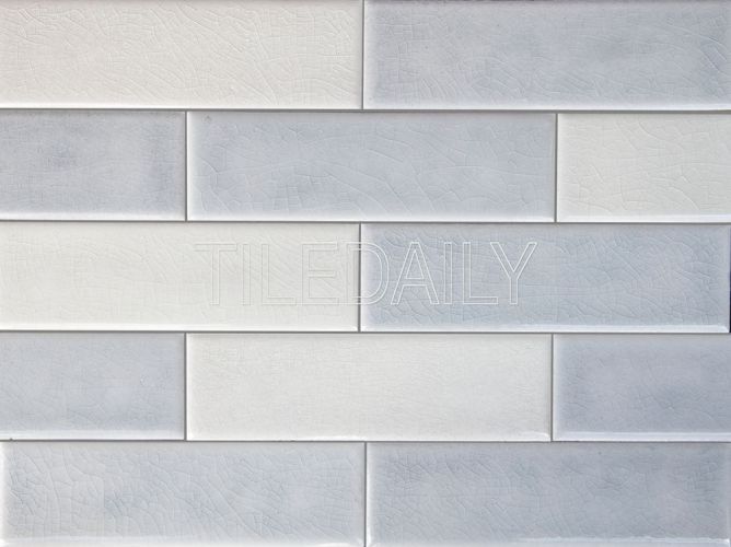 Tile code: P0090 – 2.5 x 8 Oxford Crackle Subway Tile, Ice Grey & Off White
