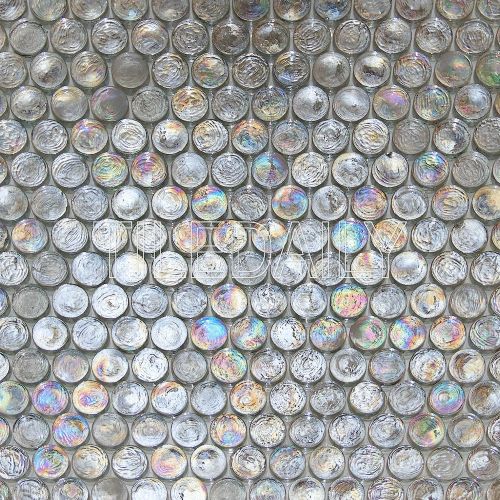 Tile code: GM0152WE – 3/4″ Iridescent Penny Round Glass Mosaic Tile, Ice White