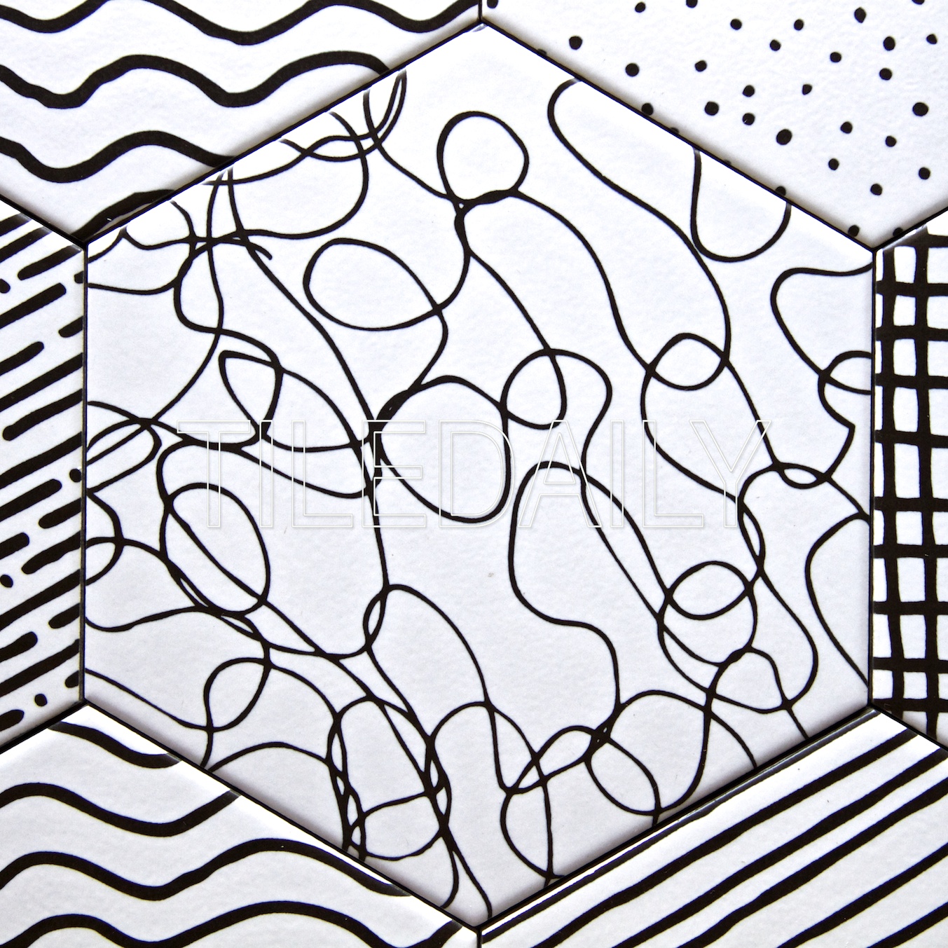 Tile Code: P0121 – 7×8 Abstract Hexagon Black and White