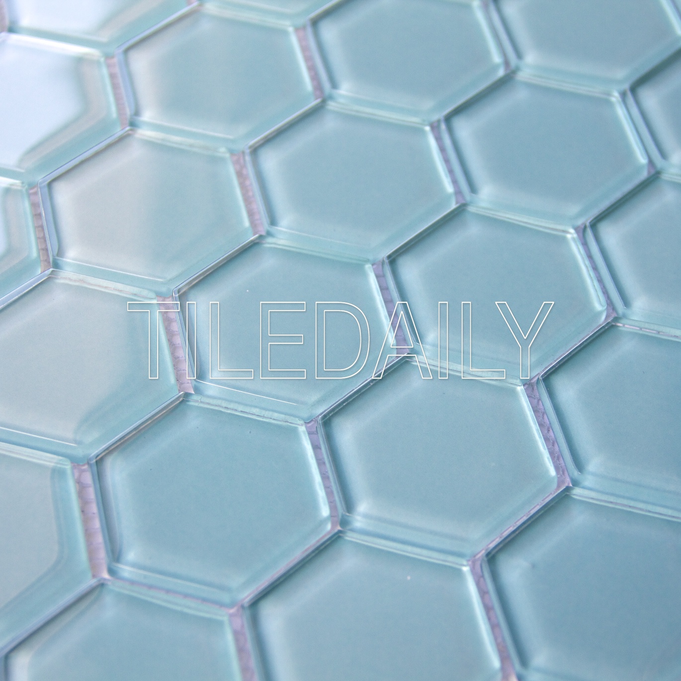 Tile code: GM0134LTQ – 2″ Hexagon Glass Mosaic Tile, Light Turquoise