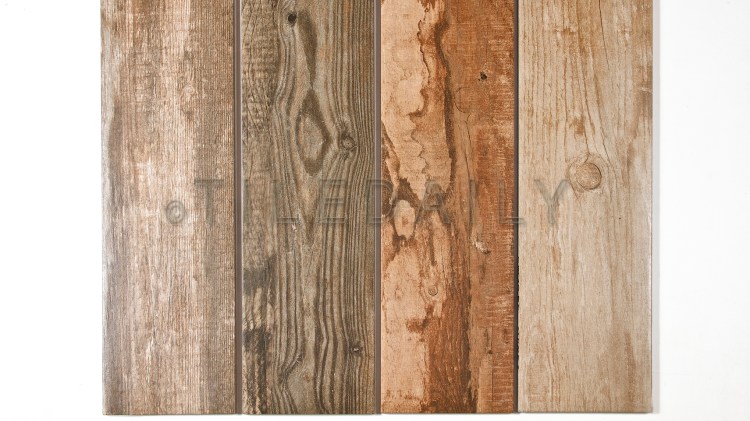 Wood porcelain tile with a rustic vintage look from TileDaily