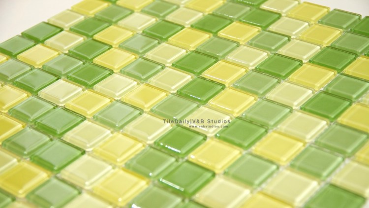 Thin Square Glass Mosaic, Green Mix